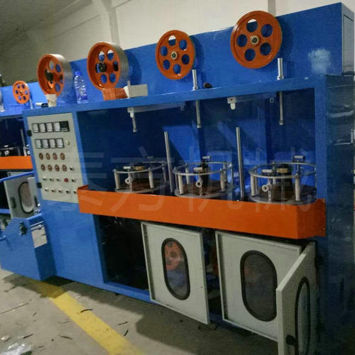 本机为立式三层绕包机,将包带(云母带、棉纸带、铝箔、聚酯薄膜等)通过转盘旋转,绕包在芯线上,具有三个绕包头。主要用于电线、力缆、控缆、光缆等的绝缘芯线绕包。